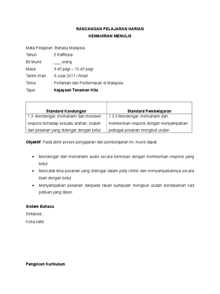 Rph 1 dengar tutur BM TAHUN 4 KSSR 1. RPH KSSR Bahasa Melayu Tahun 2. Setelah itu guru menjalankan aktiviti tindakan susulan.